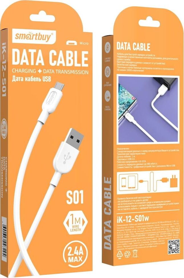 SMARTBUY (iK-12-S01w) S01 MicroUSB белый, 2.4А, 1 м
