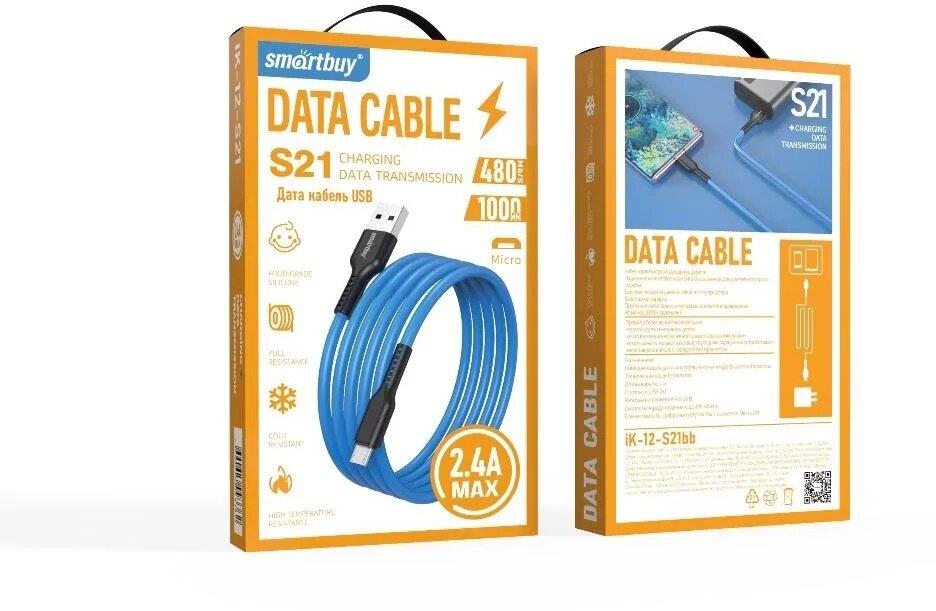 SMARTBUY (iK-12-S21bb) S21 MicroUSB синий, 2.4 А, сил., 1 м