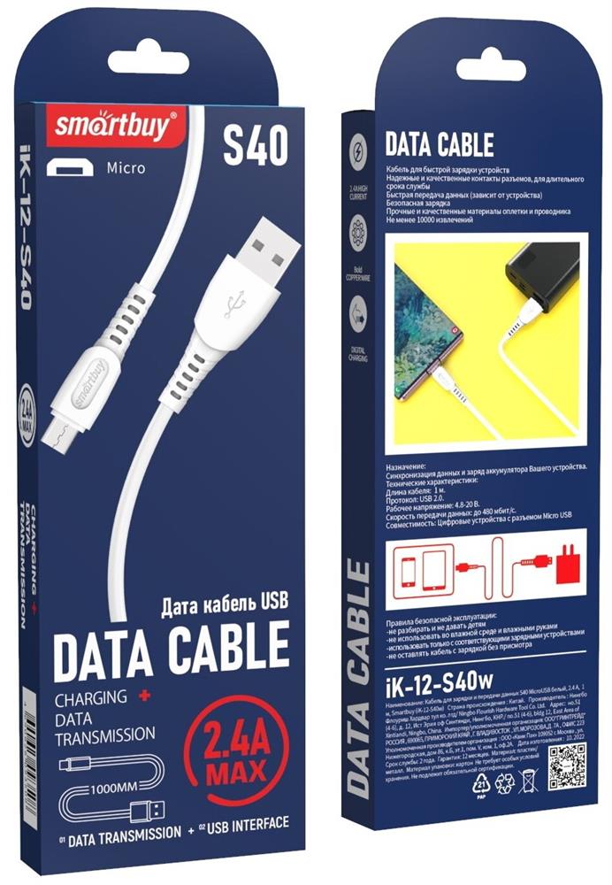 SMARTBUY (iK-12-S40w) S40 MicroUSB белый, 2.4 А, 1 м