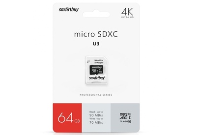 SMARTBUY (SB64GBSDCL10U3-01) MicroSDXC 64GB Class10 PRO (U3) 95/60 MB/S + адаптер