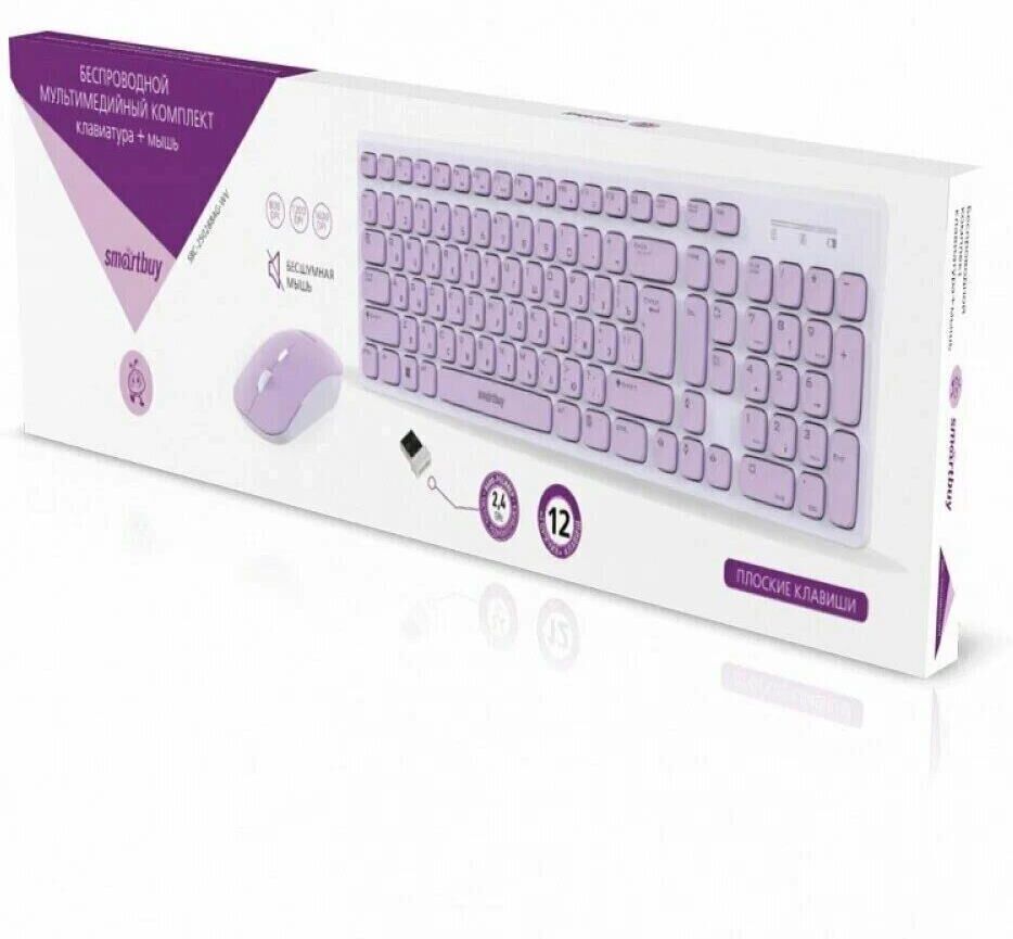 Беспроводная клавиатура и мышь имеют выверенные эргономичные формы. У клавиатуры низкопрофильные клавиши скругленной формы, нажимаются тихо и мягко. У мыши бесшумные кнопки и оптимальный размер, она подойдёт для большинства размеров рук. Мышь и клавиатура работают от одного нано-ресивера. Радиус сигнала до 10 метров. Клавиатура имеет мультимедийные клавиши, которые активируются при нажатой клавише FN. Батарейки входят в комплект, покупать отдельно не нужно! Комплект идеально подходит для использования дома и в офисе. Покупателю предлагается выбор из 4-х цветовых решений.