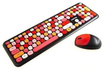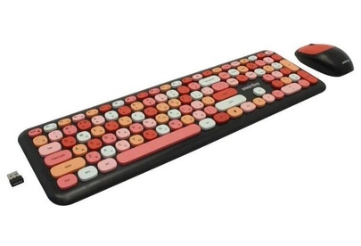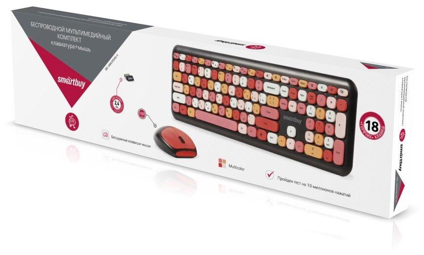 Цвет мыши: черныйТип сенсора: ОптическийКоличество кнопок мыши: 3Радиус действия: до 10 мПитание мыши: 1 батарейка ААРазрешение мыши (dpi): 1000Интерфейс подключения: USBЦвет клавиатуры: белыйПитание клавиатуры: 1 батарейка ААА
