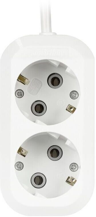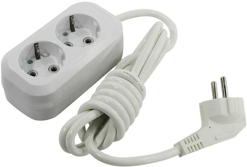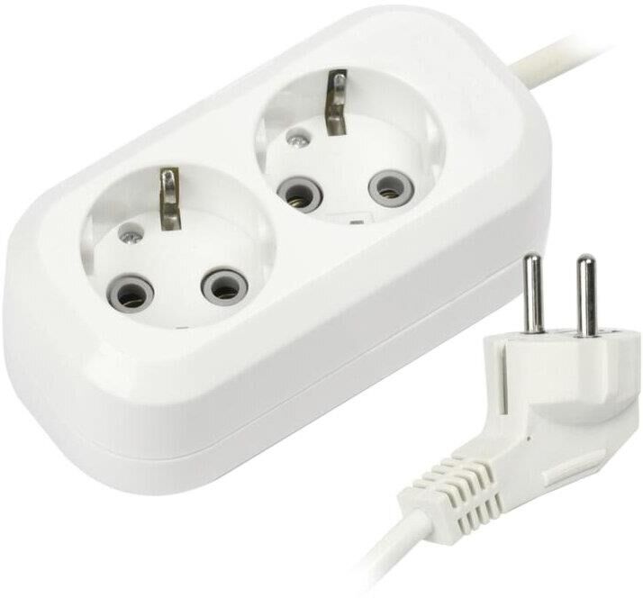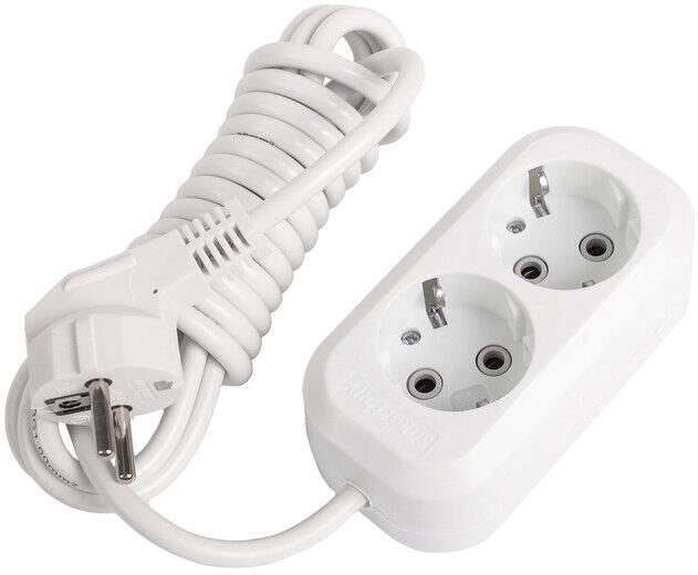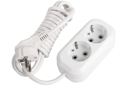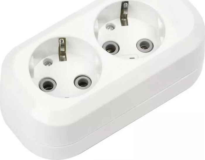 Колодка, количество розеток - 2, номинальное напряжение: 250 В; частота: 50 Гц; номинальный ток: 16 А; материал корпуса: АБС-пластик; климатическое исполнение: УХЛ-3; степень защиты от влаги и пыли: IP-20; Цвет: белый.