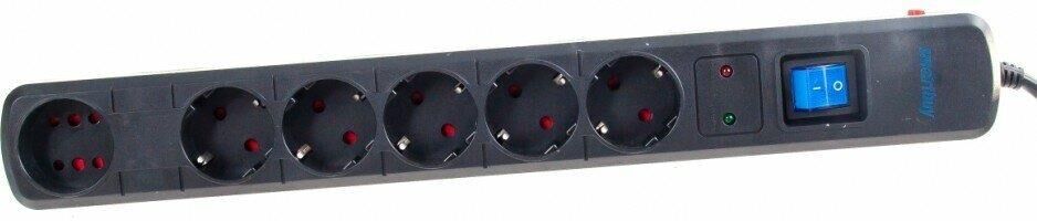 Сетевой фильтр Smartbuy- 16А- 3500 Вт- 6 гнезд- длина 3-0 м- черный (SBSP-30K-Pro)/30