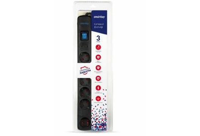 Сетевой фильтр Smartbuy- 16А- 3500 Вт- 6 гнезд- длина 5-0 м- черный (SBSP-50K-Pro)/30
