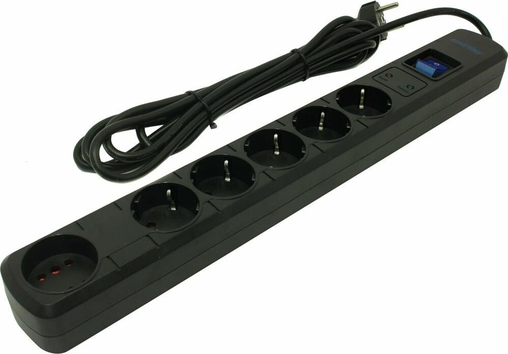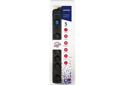 Сетевой фильтр Smartbuy- 16А- 3500 Вт- 6 гнезд- длина 5-0 м- черный (SBSP-50K-Pro)/30