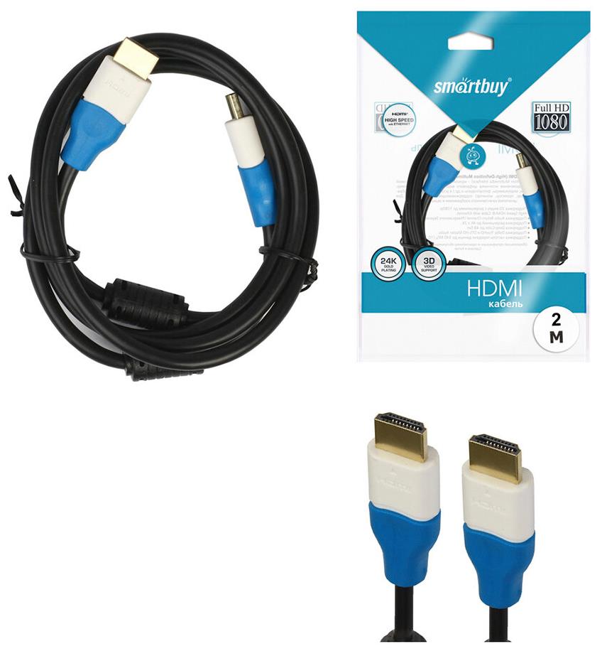 Кабель Smartbuy HDMI to HDMI ver.1.4b A-M/A-M, 2,0 m (24K) в пакете (К321)