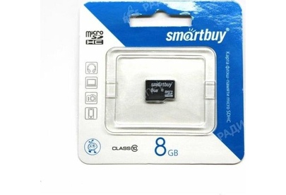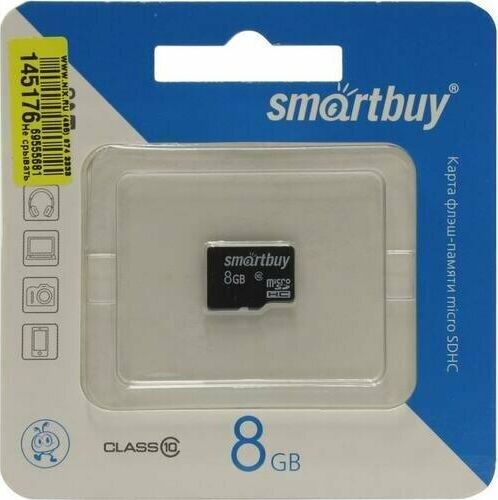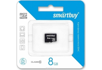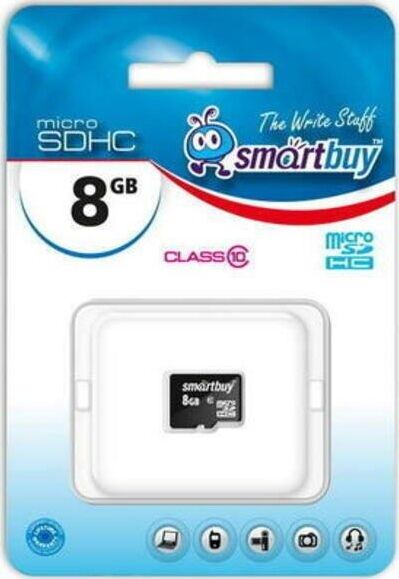 micro SDHC карта памяти Smart Buy 8GB Сlass 10. Скорость передачи данных 10 МБ/с.
