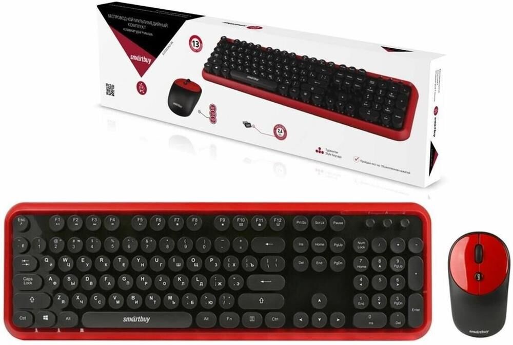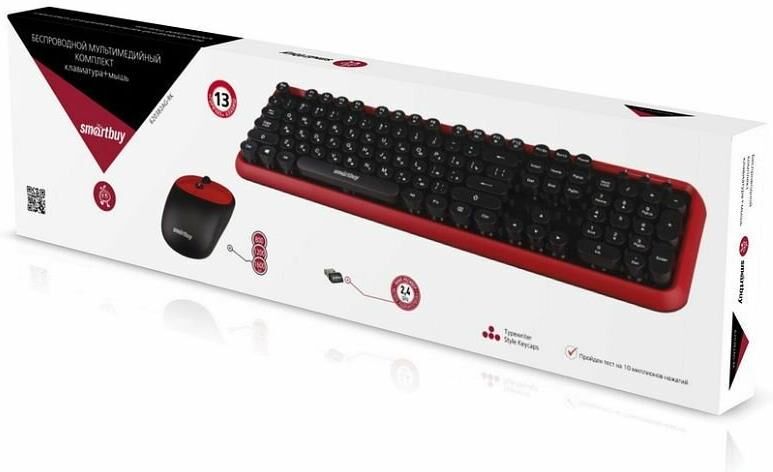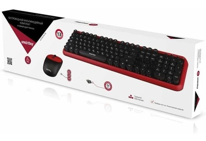 Набор беспроводной (клавиатура+мышь), мультимедийный, интерфейс подключения USB, клавиатура - количество клавиш - 104; мышь - лазерная, количество кнопок - 2+колесо прокрутки, разрешение - 1600 dpi, цвет - черный/красный.