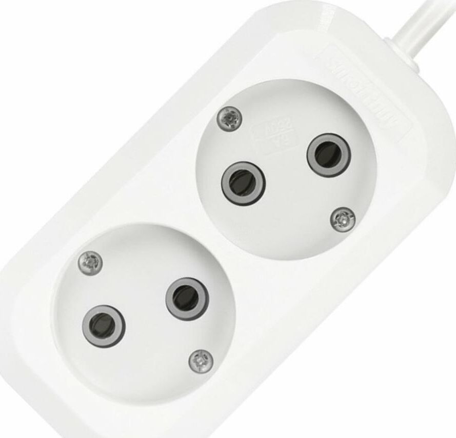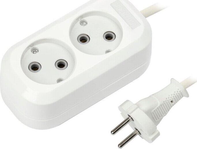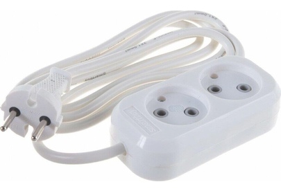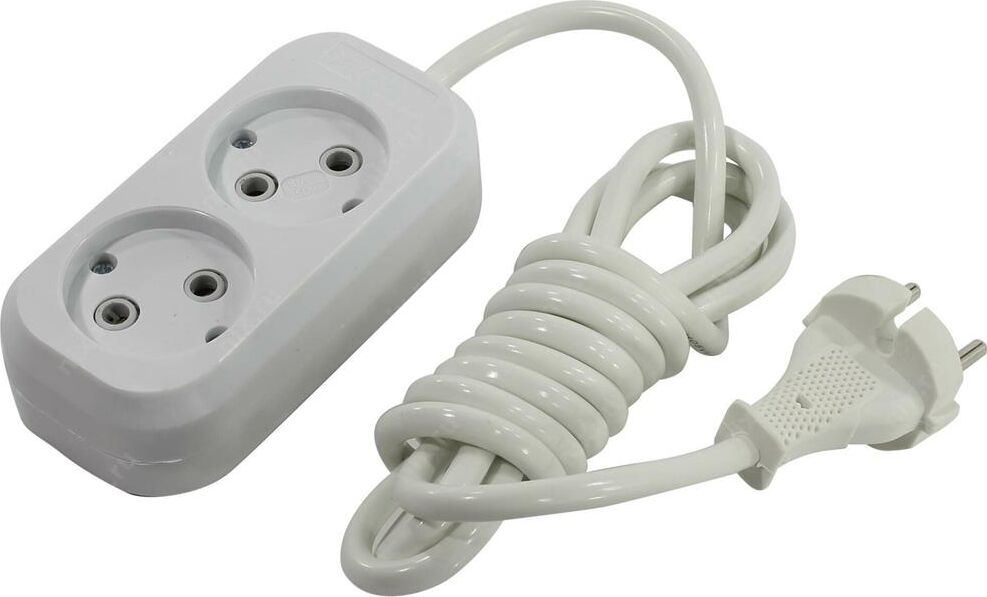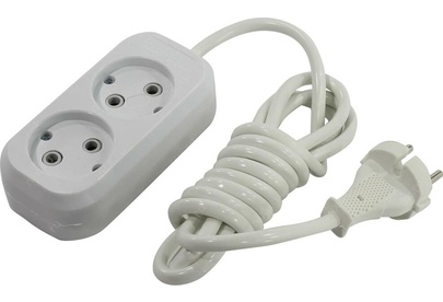 Удлинитель, количество розеток - 2, номинальный ток, А - 10, номинальное напряжение: 250 В; частота: 50 Гц; тип провода: ПВС 2x1,0мм; материал корпуса: АБС-пластик; климатическое исполнение: УХЛ-3; степень защиты от влаги и пыли: IP-20; длина провода - 2 м.