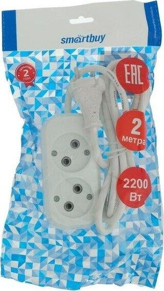SMARTBUY SBE-10-2-02-N 2 гнезда 2 метра (10А/2.2кВт, ПВС 2х1.0)