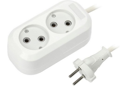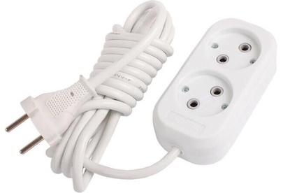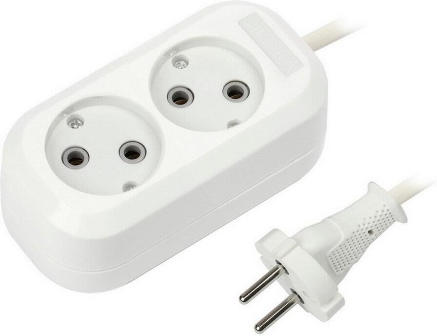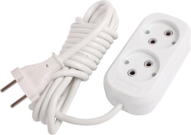 Удлинитель, количество розеток - 2, номинальный ток, А - 10, номинальное напряжение: 250 В; частота: 50 Гц; тип провода: ПВС 2x1,0мм; материал корпуса: АБС-пластик; климатическое исполнение: УХЛ-3; степень защиты от влаги и пыли: IP-20; длина провода - 3 м.