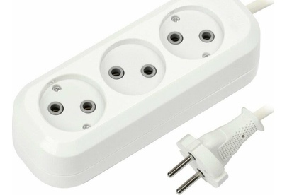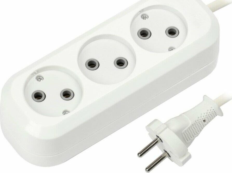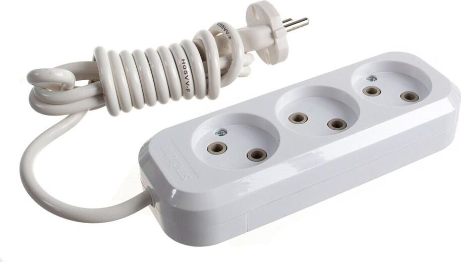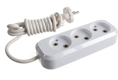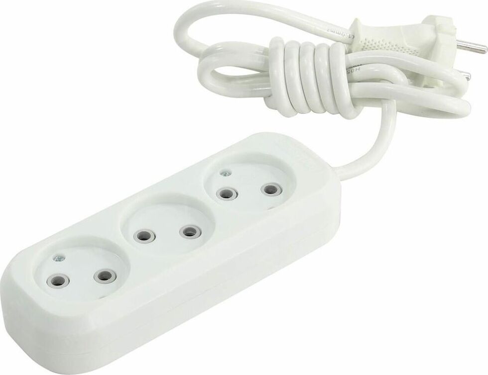 Удлинитель, количество розеток - 3, номинальный ток, А - 10, номинальное напряжение: 250 В; частота: 50 Гц; тип провода: ПВС 2x1,0мм; материал корпуса: АБС-пластик; климатическое исполнение: УХЛ-3; степень защиты от влаги и пыли: IP-20; длина провода - 2 м.