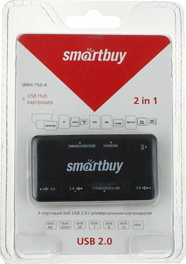 SMARTBUY SBRH-750-K хаб + картридер черный