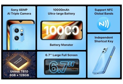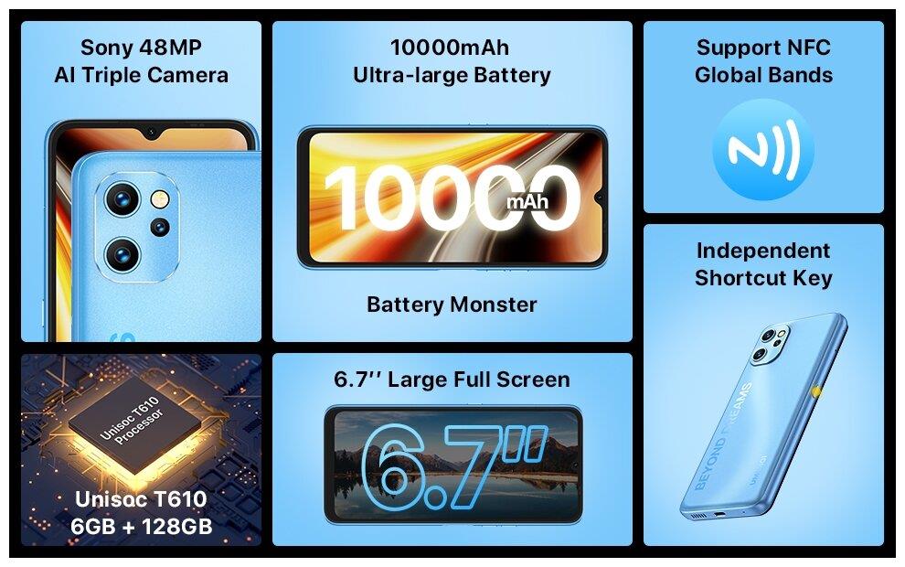 Диагональ экрана, дюймы 6.7 Емкость аккумулятора, мАч 10000 Процессор T610 (8 ядер), 1.8 ГГц Основной материал корпуса Пластик Беспроводные интерфейсы Bluetooth, GPS, NFC, Wi-Fi Разрешение экрана 1650x720 Число ядер процессора 8 Оперативная память 6 ГБ Встроенная память 128 ГБ