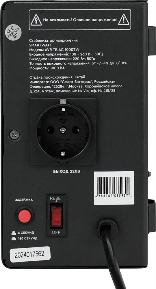 SMARTWATT Стабилизатор напряжения AVR Triac 1000TW черный [4512020380001]