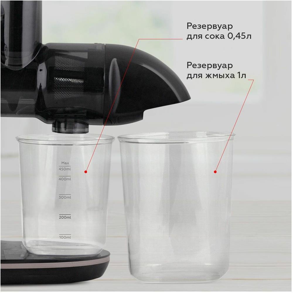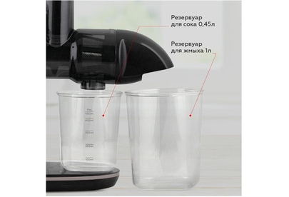 Мощность: 150 Вт Число скоростей: 2 Число оборотов: 110 об/мин Диаметр желоба загрузки: 44 мм Объем кувшина для сока: 450 мл Объем контейнера для жмыха: 1 л Вес: 3.5 кг