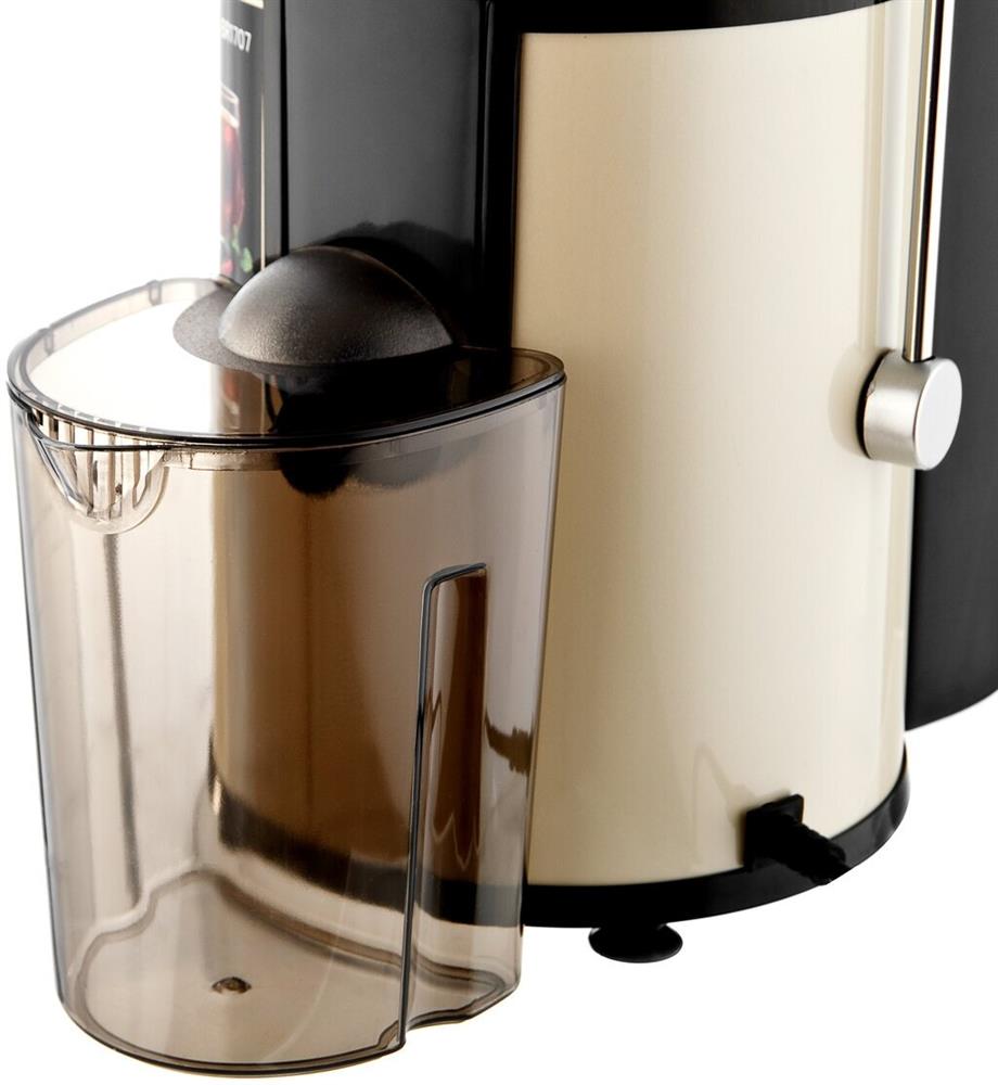 Центробежная соковыжималка Мощность 500 Вт 2 скорости Корпус из высококачественного пластика Контейнер для сока объемом 0,5 л Контейнер для мякоти объемом 1,6 л Диаметр отверстия 65 мм Противокапельная система Прорезиненные ножки Электропитание 220-240 В, ~50/60 Гц