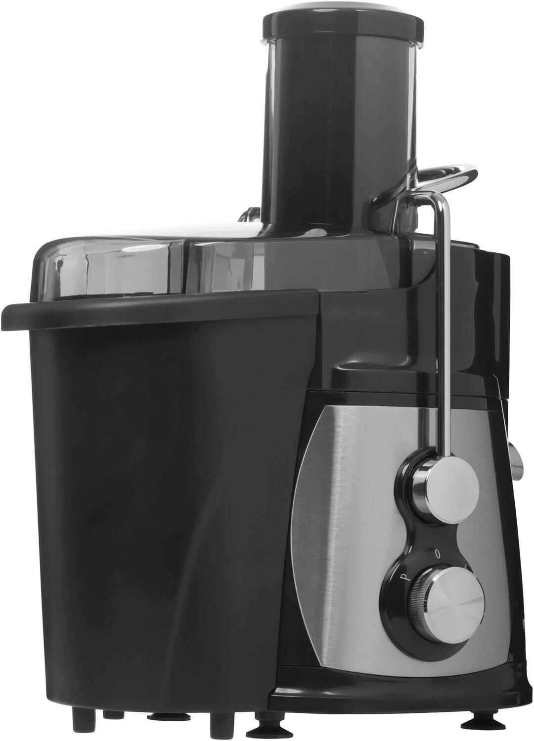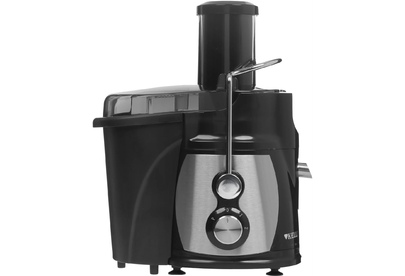Соковыжималка центробежная. Мощность 1100 Вт, питание 220-240В, 50Гц, металлический корпус и фильтр, объем резервуара сока 1л., 2 скорости + импульный режим, широка я загрузочная горловина - 75мм, объем контейнера для жмыха 1л, функция "Капля-стоп, прорезиненные ножки, защита от перегрева и перегрузки, блокировка двигателя при открытой крышке, легкая очистка