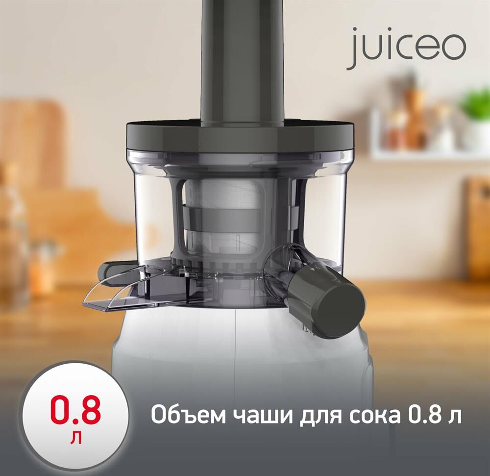 Шнековая соковыжималка, потребляемая мощность 150Вт, 80 оборотов в минуту, реверс, 1 скорость