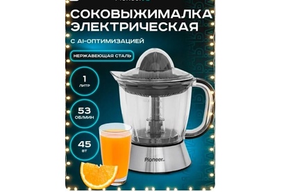 Соковыжималка Pioneer JC2071 Мощность: 45Вт Объем контейнера для сока: 1л Автоматическая сепарация сока и мякоти Высокая скорость вращения: 53 об/мин База корпуса из нержавеющей стали Фильтр из пластика Легкость в применении и мытье Прорезиненные ножки для предотвращения скольжения