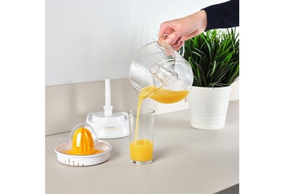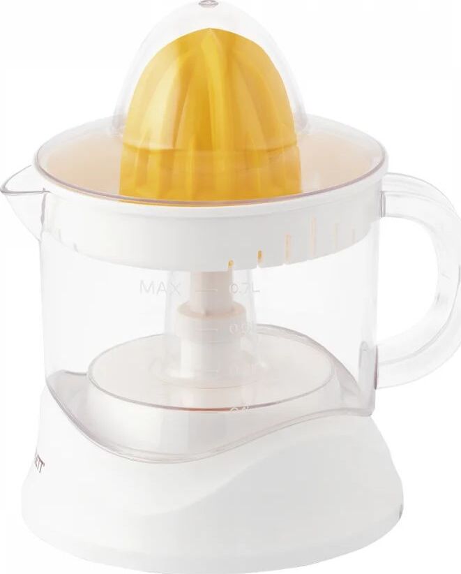Тип: Цитрусовая. Мощность, Вт: 25. Принадлежность к линейке: EasyClean. Резервуар для сока, мл: 700. Насадки: 2 насадки-конуса для цитрусовых разных размеров. Включение: Нажатием на конус. Длина электрошнура, м: 1. Особенности модели: 1) Двустороннее вращение конуса. 2) Прозрачная крышка для защиты от загрязнений. 3) Прорезиненные ножки. Цвет: Белый