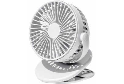 Вращение корпуса 360. Три скорости, зарядка от USB. Основание вентилятора представляет собой крепкий зажим с противоскользящим покрытием. Встроенный аккумулятор емкостью 2000 мА поддерживает работу вентилятора в течение 2-6 часов. Встроенный порт USB Type-C. Погружать корпус в воду запрещено.