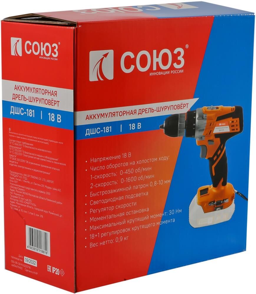 СОЮЗ Аккумуляторный шуруповерт ДШС-181