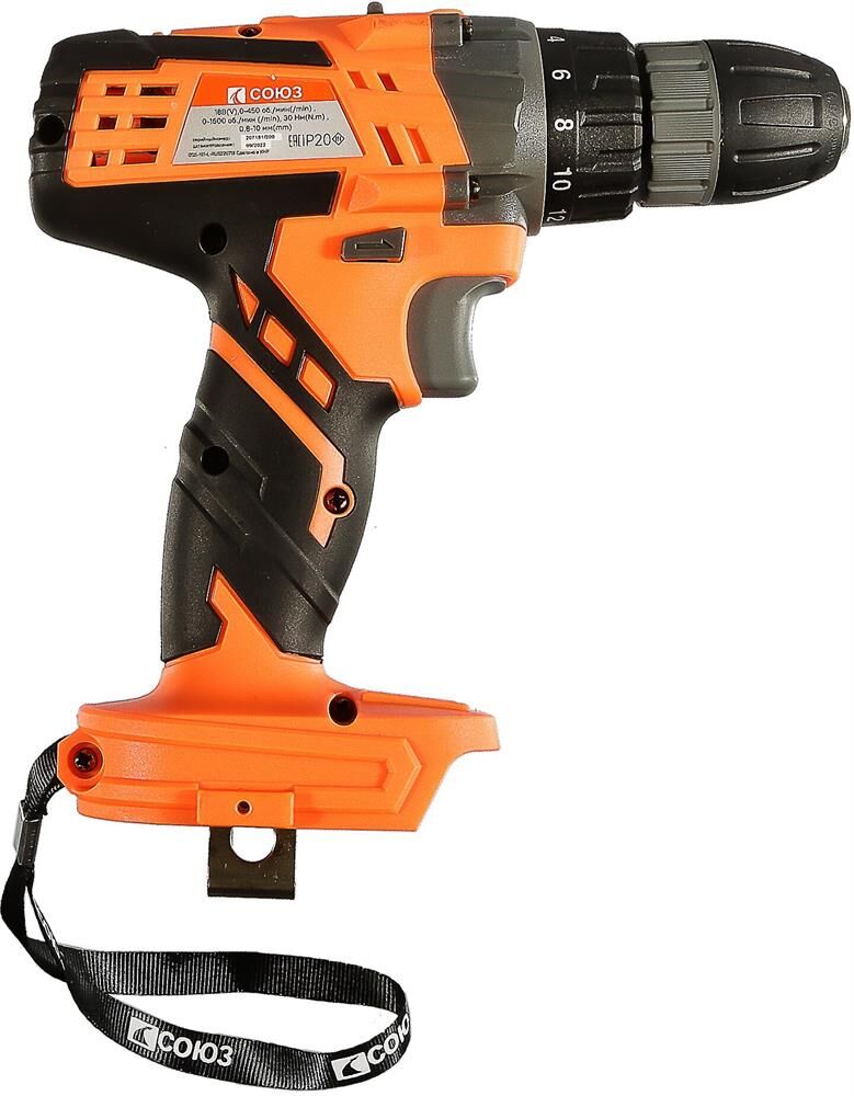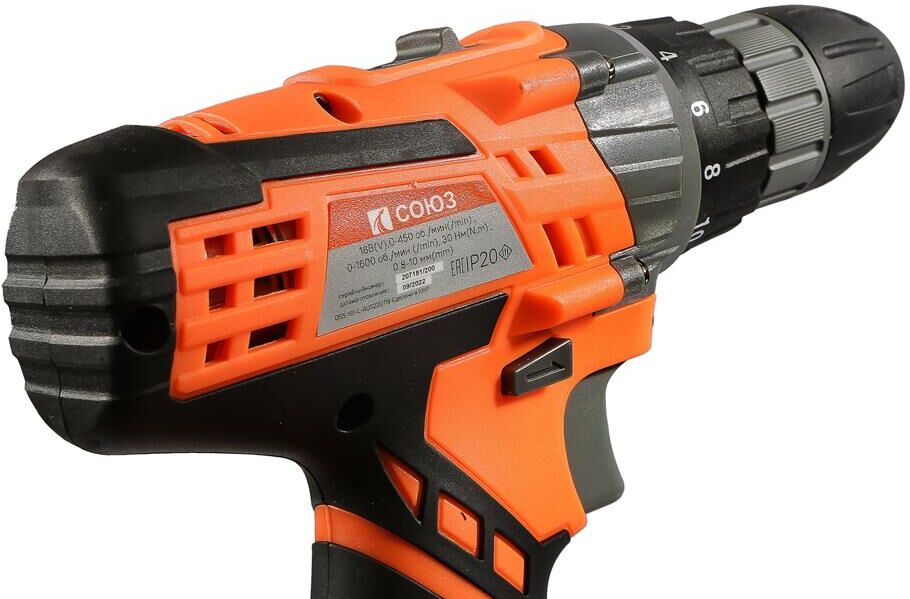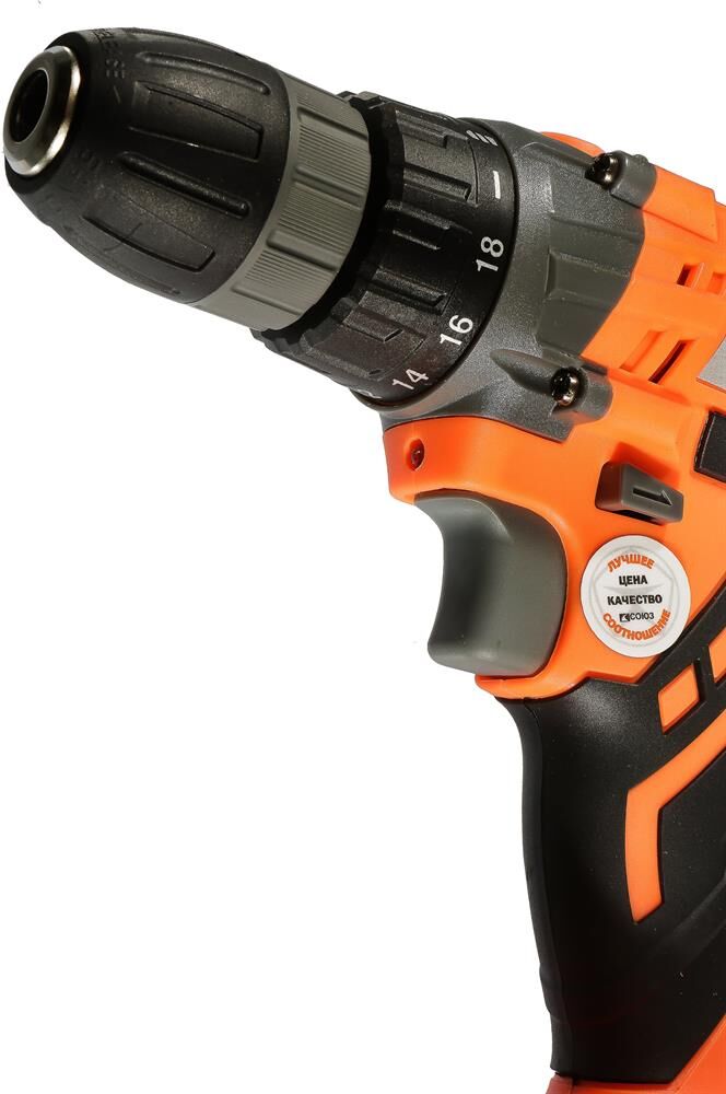 Аккумуляторная дрель-шуруповерт Союз ДШС-181 — выгодная модель с простым управлением подходит для выполнения всех видов работ по беспроводном сверлении и установке крепежа. Прочный двухскоростной планетарный редуктор позволяет потребителю эффективно выполнять работы по сверлению в древесине, пластмассе и металле. Оптимальная регулировка силы крутящего момента, в 18 ступень + ступень сверления, позволяет устанавливать любой крепеж без его повреждения и вдавливания в материал. Компактный быстрозажимной патрон улучшает доступ в ограниченном пространстве, а широкая муфта патрона позволяет прочно закреплять оснастку. Благодаря универсальному патрону диаметром 10 мм модель подходит для основных видов работ по закручиванию шурупов и сверлению. Встроенная светодиодная подсветка эффективно освещает рабочую область направленным симметричным лучом. Корпус с улучшенной защитой от пыли и влаги выполнен из ударопрочного нейлона с резиновыми антивибрационными вставками. Эргономичная рукоятка с мя