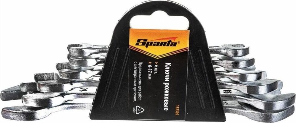 Набор рожковых ключей SPARTA 6x17 мм, 6 шт., хромированные 152305 надежно защищены от коррозии. Инструмент имеет высокую прочность и закален до 42 HRC. Поставляется в пластиковом держателе.