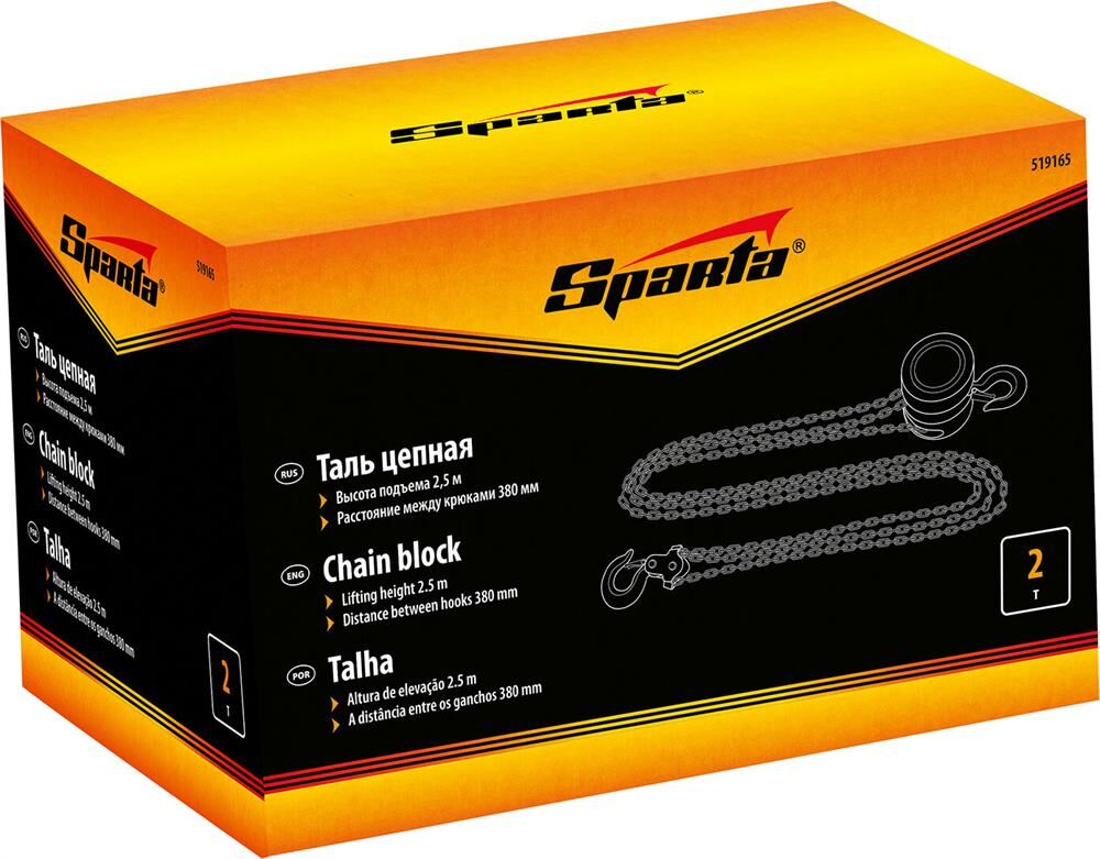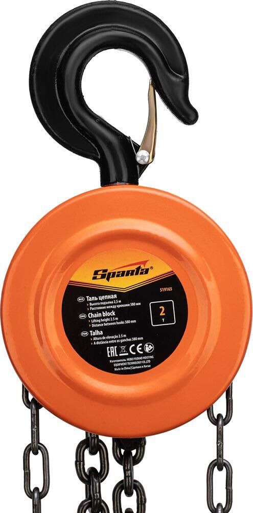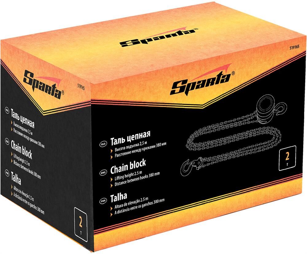 SPARTA Таль цепная, 2 т, H подъема 2.5 м, расстояние между крюками 380 мм 519165