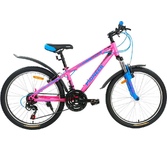 Размер колеса: 24"Назначение: ПОДРОСТКОВЫЕТип: ГОРНЫЙРазмер рамы: 12"Материал рамы: стальКоличество скоростей: 21Серия переключателей скоростей: PIONEERВилка: амортизирующая, GOODТормоза передние/задние: V-brake/V-brakeПокрышки: PIONEER, 24"x2,125",матовая краска
