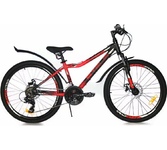 Колеса: 24", Рама: Алюминий 13", Скоростей: 21, Вилка: Амортизационная, ход 40мм, Трещотка, SHIMANO MF-TZ500 (14-28T), Перек. пер. SHIMANO Tourney FD-TY500, зад. SHIMANO Tourney RD-TY300, Шифтеры: SHIMANO Tourney ST-EF41, Тормоза: Дисковые механические
