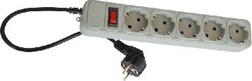 5 мест, тумблер питания со светодиодной индикацией, корпус из высококачественного пластика, трехжильный кабель ПВС, длина кабеля: 3 м, номинальное напряжение: 220 В, рабочая частота: 50–60 Гц, суммарная мощность нагрузок: 2,2кВт.