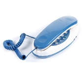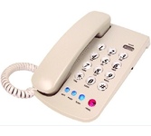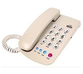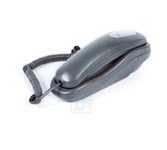 Проводной телефон, узкий корпус. Кнопки набора номера на трубке. Большие цифры на кнопках. Сброс/ Пауза/ Повтор номера. Регулировка громкости звонка. Переключение Импульсного/ Тонового набора номера (по умолчанию импульсный). 3 однокнопочных набора номера. 10 двухкнопочных наборовномера в памяти. Настольное и настенное крепление.