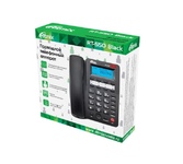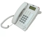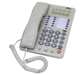 Проводной телефон с дисплеем. Совместимость с FSK/DTMF/ETSI с автоматическим определением, 16-разрядный ЖК-дисплей, 59 входящих и 16 исходящих звонков памяти, 10 кнопок для быстрого однокнопочного набора. Возможность подключения к мини АТС, перевод звонка. Функция повторного набора последнего номера. Будильник. Функция мелодии во время удержания звонка. Функция набора номера и разговора по громкой связи. Функция подсветки ЖК-дисплея. Пауза/сброс. Функция калькулятора. Функция отключения микрофона. Регулировка громкости динамика. Регулировка громкости звонка. Настенное / настольное размещение