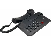 Проводной базовый телефон без дисплея. Сброс/ Повтор номера/Отключение микрофона. Переключение Импульсного /Тонового набора номера. Блокировка набора номера. Регулировка громкости звонка. Светодиодная индикация подключения к линии. Настольное и настенное крепление.