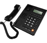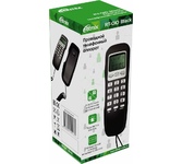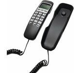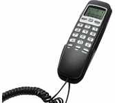 Проводной телефон с дисплеем, узкий корпус. Кнопки набора номера на базе. Пауза/ Повтор набора номера. Переключение. Системы определения номера входящего звонка (Caller ID), 32 входящих, 16 исходящих номеров в памяти. Импульсного /Тонового набора номера. Настольное и настенное крепление.