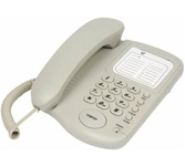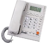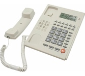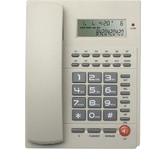 Проводной телефон с дисплеем. Сброс / Пауза/ Повторный набор. ЖК дисплей, 5 уровней контрастности. Регулировка громкости звонка. Хендс-фри, спикерфон. Переключение Импульсного /Тонового набора номера. FSKD/DTMF системы определения номера входящего звонка (Caller ID). 35 входящих, 10 исходящих номеров в памяти - номер, дата и время доступны для просмотра, 16 мелодий звонка, 10 однокнопочных набора. Календарь и часы в реальном времени на дисплее. Набор до дозвона с функцией корректировки. Функция «любимого номера». Поддержка функции Power Safe