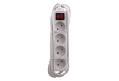 Колодка на 4 розетки Длина провода 3 м. Провод ПВС с сечением 2х0,75 мм2. Кнопка включения Макс нагрузка 2200 Вт Сила тока 10 А Материал - негорючий, ударопрочный РР-пластик. Корпус неразборный. Цвет-белый