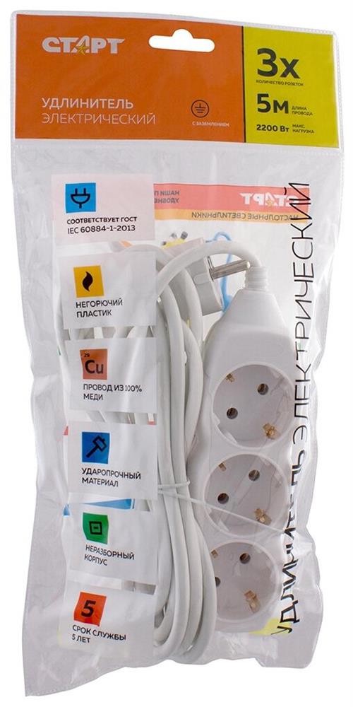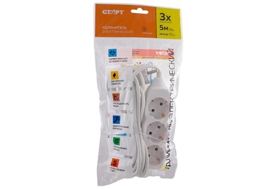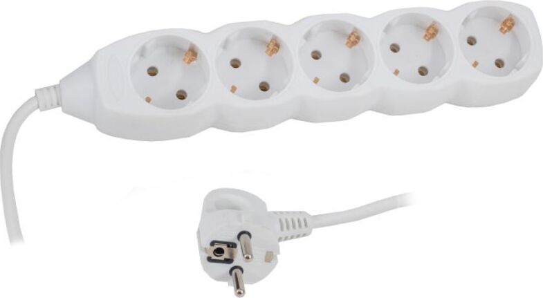 Колодка на 5 розеток Длина провода 3 м. Провод ПВС с сечением 3х0,75 мм2. Заземление Макс нагрузка 2200 Вт Сила тока 10 А Эргономичная вилка Материал - негорючий, ударопрочный РР-пластик. Корпус неразборный. Цвет-белый