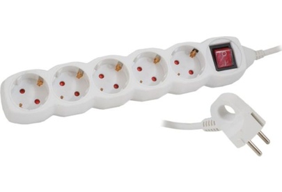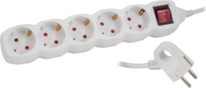 Колодка на 5 розеток Длина провода 3 м. Провод ПВС с сечением 3х0,75 мм2. Заземление Защитные шторки от детей Кнопка включения Макс нагрузка 2200 Вт Сила тока 10 А Эргономичная вилка Материал - негорючий, ударопрочный РР-пластик. Корпус неразборный. Цвет-белый