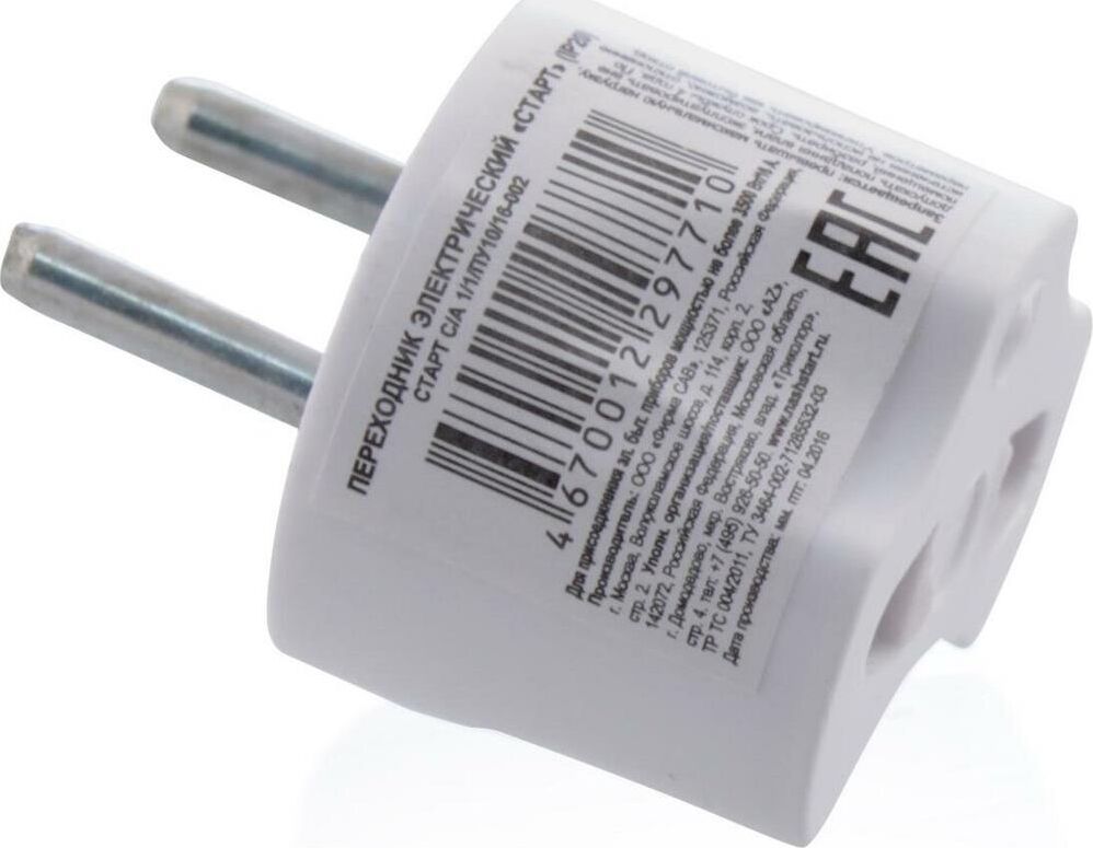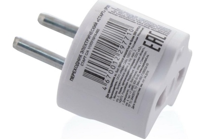 Переходник с РФ - вилки на евро-вилку Тех параметры: Макс нагрузка 1300 Вт Сила тока 6 А. Корпус из высококачественного ударопрочного пластика IP-20 Степень защиты (использовать только в помещениях)