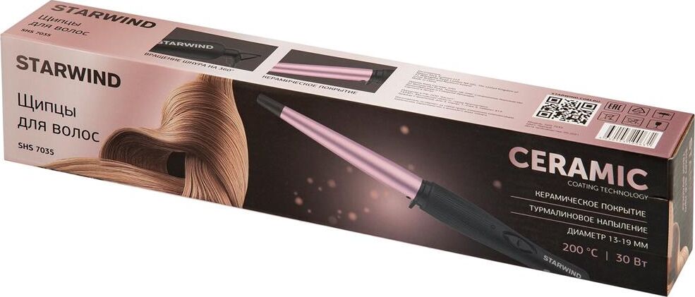 Мощность 30 Вт Количество режимов нагрева 1 Максимальная температура 200 °С Покрытие турмалиновое Ионизация Индикатор готовности к работе Шарнирное крепление шнура Особенности: форма щипцов конус Цвет черный Дополнительный цвет фиолетовый Петля для подвеш