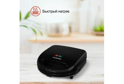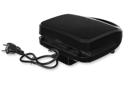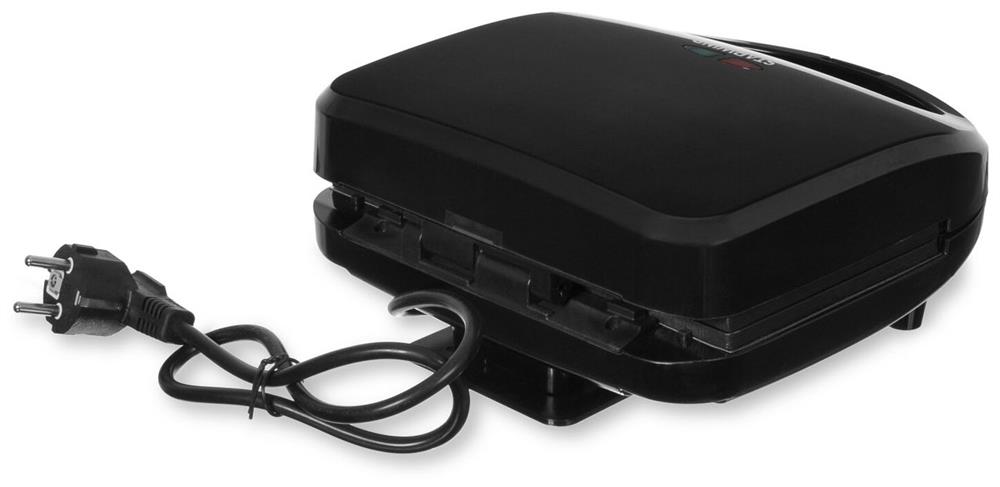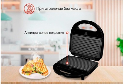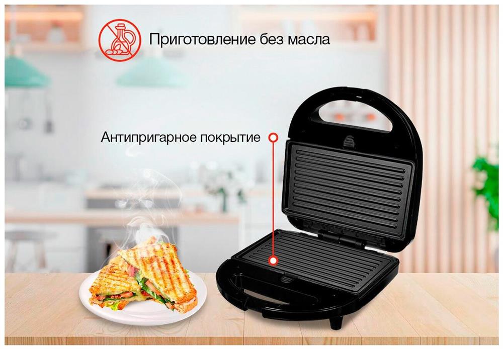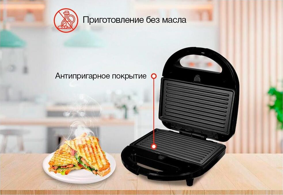 Мощность 750Вт Тип панели: сендвичница Антипригарное покрытие Индикатор нагрева Автоматическое отключение Замок фиксации закрытия крышки Ненагревающаяся ручка Цвет черный Срок гарантии 12 мес