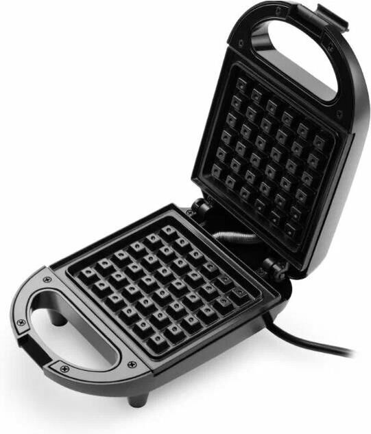 Вафельница. Мощность: 600 Вт, Форма нагревательных частей: прямоугольная, Формы для готовки: пластины для вафель, Количество отделений в пластине для вафель: 1, Индикатор включения, Индикатор нагрева, Замок фиксации закрытия крышки, Цвет: черный, Особенности: Ненагревающаяся ручка, Антипригарное покрытие нагревательных частей, Вес товара: 0,75 кг, Срок гарантии: 12 месяцев.