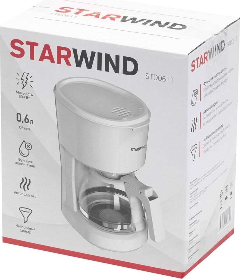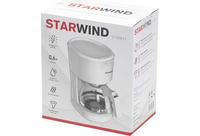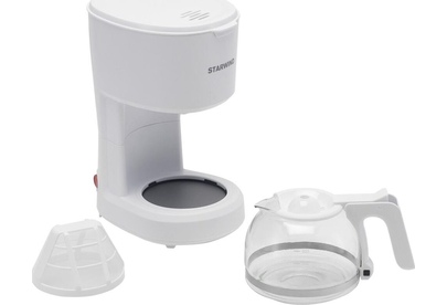 Мощность 600 Вт Резервуар для воды 0.6 л Использукемый кофе - молотый Индикатор уровня воды Противокапельная система Функция автоподогрева Материал корпуса - пластик Цвет белый Срок гарантии 12 мес