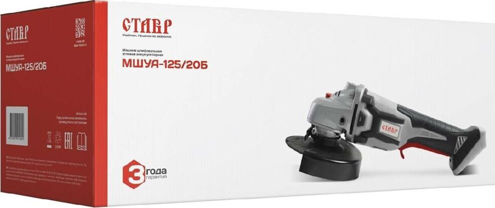 СТАВР МШУА-125/20Б (4шт) Машина шлифовальная угловая аккумуляторная 20Вольт (без аккумулятора и зарядного устройства), бесщеточный двигатель, число оборотов 8500об/мин, диаметр отрезного диска 125мм, посадочный диаметр 22,2мм, М14