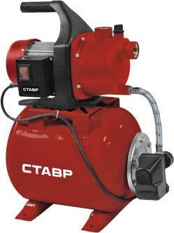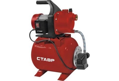Насосная станция Ставр НС-700/20, 20л, 700 Вт, производительность 50 л/мин, высота подъема 35м, давление 1,4-2,4 бар, глубина всасывания 8м, выходной патрубок 1", корпус - пластик, размер частиц 1мм, защита от перегрева, сетевой кабель 1,5м