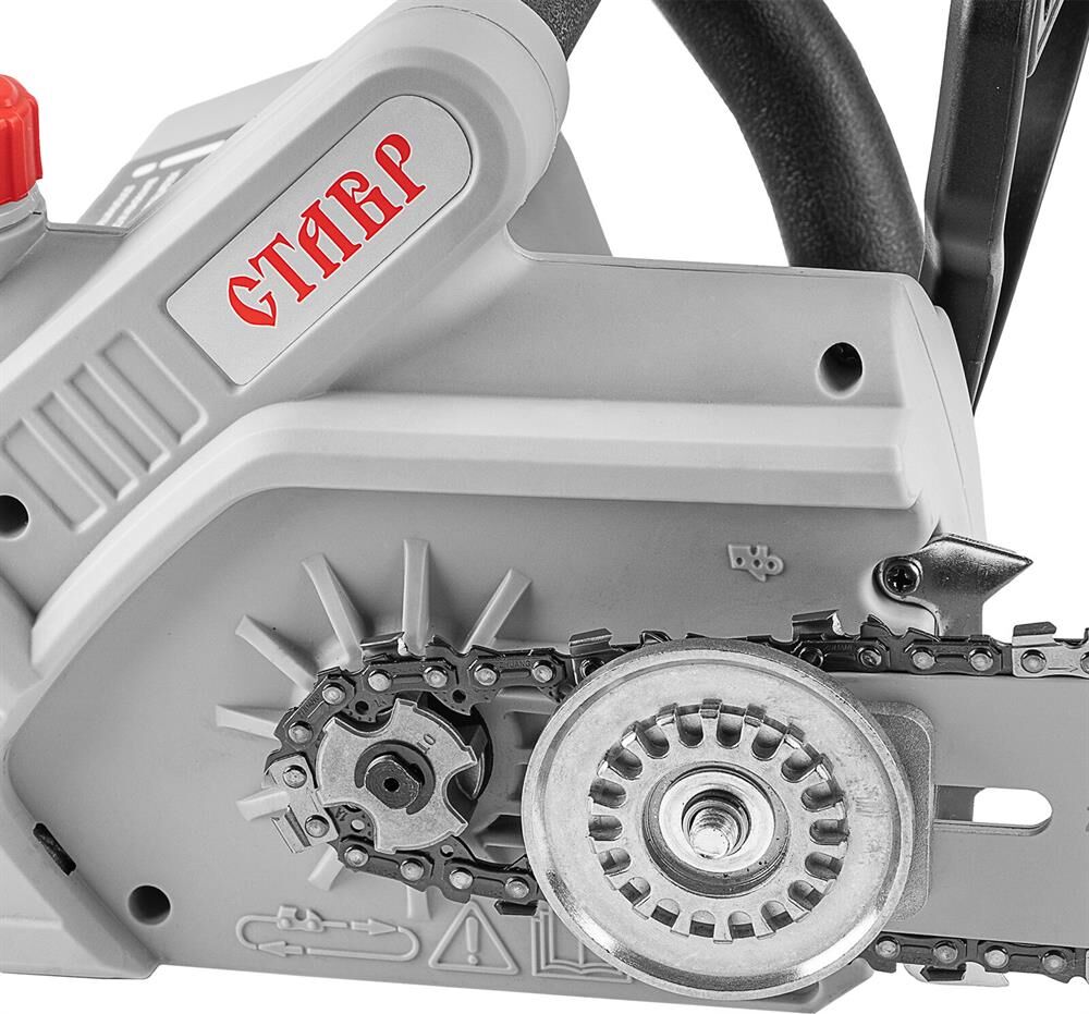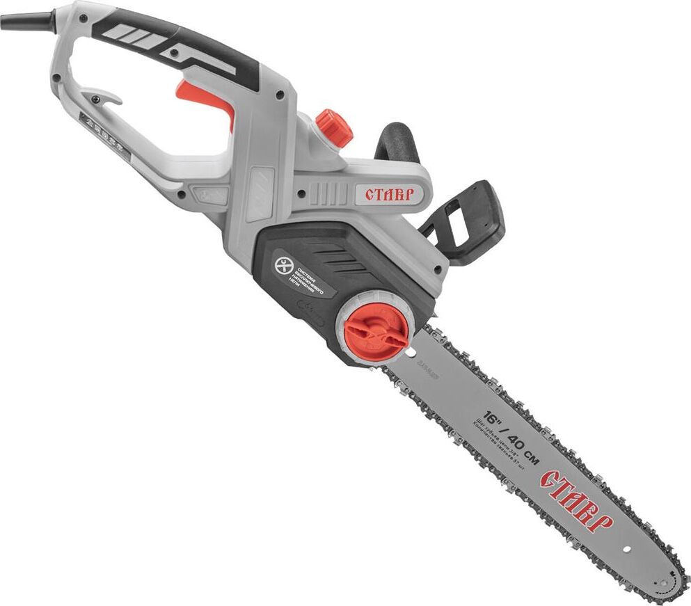 Пила цепная ЭЛЕКТРИЧЕСКАЯ, 2400 Вт, шина 40см, поперечное расположение мотора, 7000об/мин, скорость движения цепи 13 м/с, цепь 16 3/8 0,050 57 звеньев, тормоз цепи, система бесключевого натяжения цепи, автоматическая смазка цепи, плавный пуск, коробка